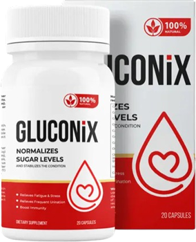 - Jis sustiprina insulino sekreciją, padidina organizmo jautrumą šiam hormonui, sumažindamas atsparumą insulinui. Be to, Gluconix trukdo angliavandenių absorbcijai žarnyne.